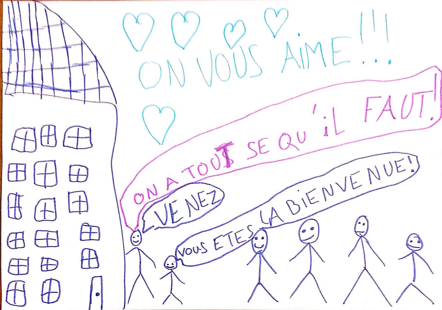 The collection of the various elements and the writing of messages of hope by children in France took place in several schools and youth centers which accepted to participate in the project and where we also organized presentations of the refugees situation to the children. They all have responded wonderfully to the explanations given as to why one can live the drama of having to leave one's home, friends, school, family, city and country and on the journey that follows.